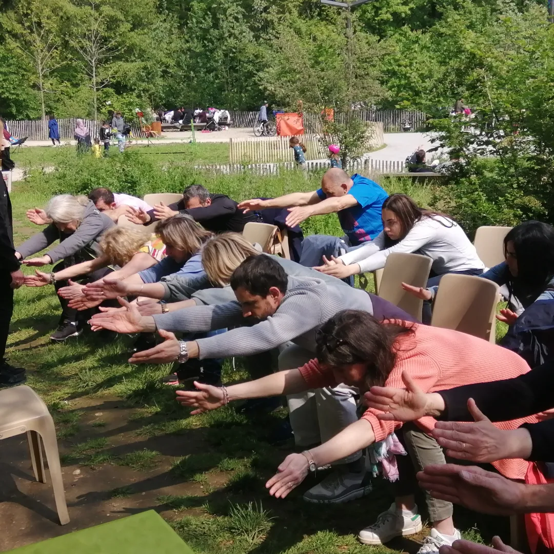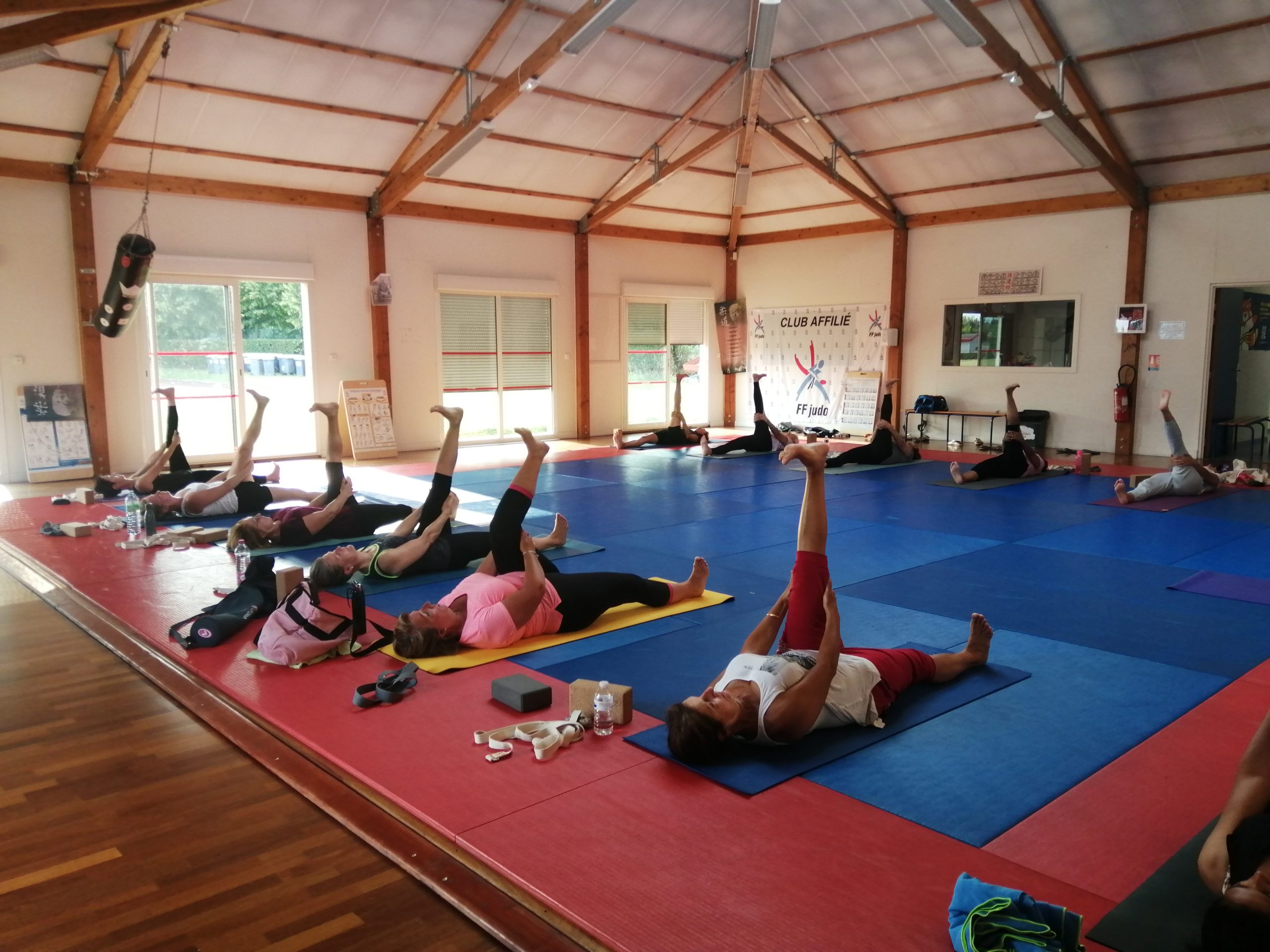 Le corps se libère des tensions par l’étirement et le mouvement. Une respiration profonde et régulière devient possible.